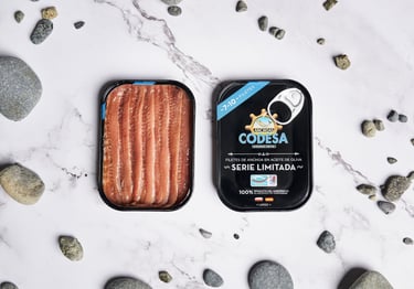 Tras este largo proceso de curación, el salazón se lava con agua purificada en el proceso de “ósmosis inversa” libre de cal e impurezas, donde posteriormente, de una manera totalmente artesanal, un equipo de expertas fileteras elabora con mimo un filete de anchoa limpio y elegante, que con delicadeza coloca en cada lata, para que la anchoa sea abrazada por un suave aceite de oliva virgen extra, el cual ha sido elaborado especialmente para Codesa por Almazaras de la Subbética para que respete todo el sabor final de este preciado manjar.